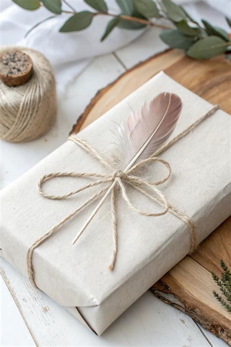 Bohemian style gift wrapping boho present with dried flowers, feathers
