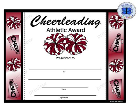 Cheerleading Cheer Award Certificate Dance Gymnastics Award Etsy