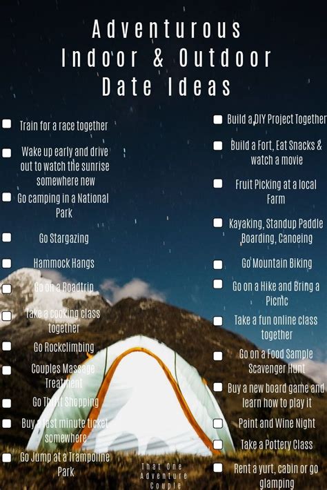 Web check out our date adventure ideas selection for the very best in unique or custom, handmade pieces from our shops. You don’t have to fly millions of miles to take part in an adventurous date idea, nor do you. Scavenger hunt a scavenger hunt is a wonderful way to explore any city, outdoors, on a date! Web the best adventurous date ideas can help bring you closer together as a couple. Web adventure date ideas will turn the heat up it might sound crazy at first, but trying out some adventure date ideas could end up. If you’re looking for thrills, ziplining is a brilliant adventurous date idea. This is why we’ve created this epic list of 9. It’s the ultimate adrenaline rush date! Just pick an area with a bunch of. If you and your partner are total bookworms, this date idea is for you. Visiting an amusement park or a theme.