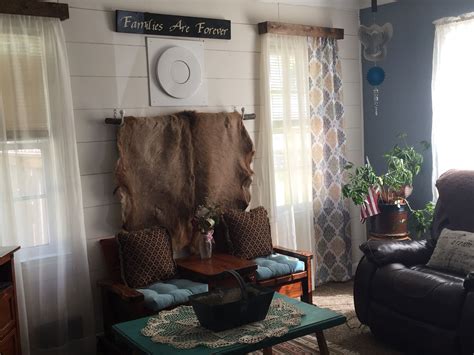 Inexpensive way to hang a deer hide! Get two curtain tie back hooks