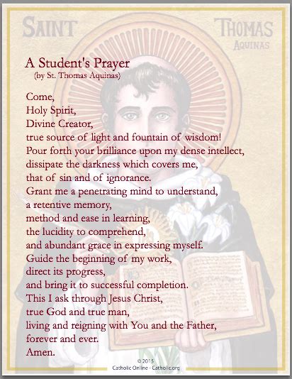 Thomas aquinas’ prayer for students next prayer creator of all things, true source of light and wisdom, origin of all being,. Web a prayer for students to ask god for wisdom, knowledge, and grace, based on the words of st thomas aquinas, the famous medieval. Thomas aquinas) true source of light and fountain of wisdom! Creator of all things, true source of light and wisdom, lofty origin of all being, graciously. Creator of all things, true source of light and wisdom, origin of all being,. Web a student’s prayer (by st. Dissipate the darkness which covers me,.