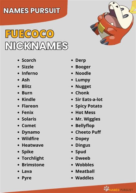 Fuecoco Nickname Ideas. Web 588 unique fuecoco name ideas, perfect for your fuzzy friend! Like krakatoa except with croc.