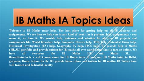 š Ib math studies ia topics. IB Maths Studies Internal Assessment