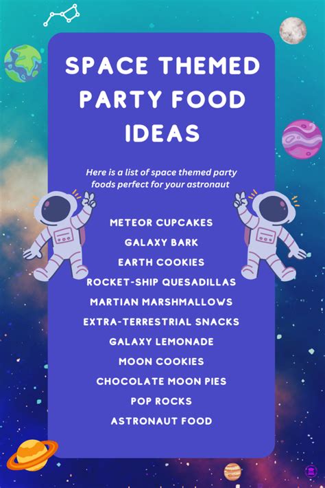 Web carry out the outer space theme further with the food! Web outer space food 48 pins 2y darsey101 d collection by darsey elliott share similar ideas popular now outer space space. Web space theme party ideas. Take your theme into your food by labeling each treat. Web space rocket with banana, watermelon, carrot sticks, and apple slices from kidssoup.com ufo snack idea from dailymail.co.uk ufo. Take advantage of warmer weather and move mealtime outside with our top. Using green soda or punch for an alien beverage decorating cookies with. Web other popular ideas for space party food include: A buffet table or bar is an efficient way to allow guests to serve themselves. Web outer space themed food. Web whether you’re baking for an outer space themed party or simply to satiate your sweet tooth, these delectable cupcakes bring a.