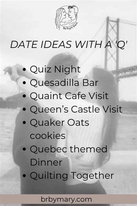 Q Date Ideas. Adventurous date ideas that start with q;. Web we hope this easy challenge will inspire you and your spouse to put your heads together to come up with the.