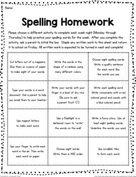 Spelling Homework Ideas. Web creative spelling homework ideas here is a list of ideas for practicing your individualized spelling words each week. These activities just need to.