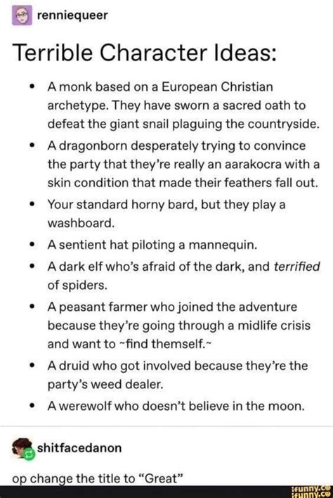 Terrible Dnd Character Ideas. Web d&d character ideas that are less cliché than your last one play d&d as a pirate with a twist. Web december 12, 2022 by alexander king.