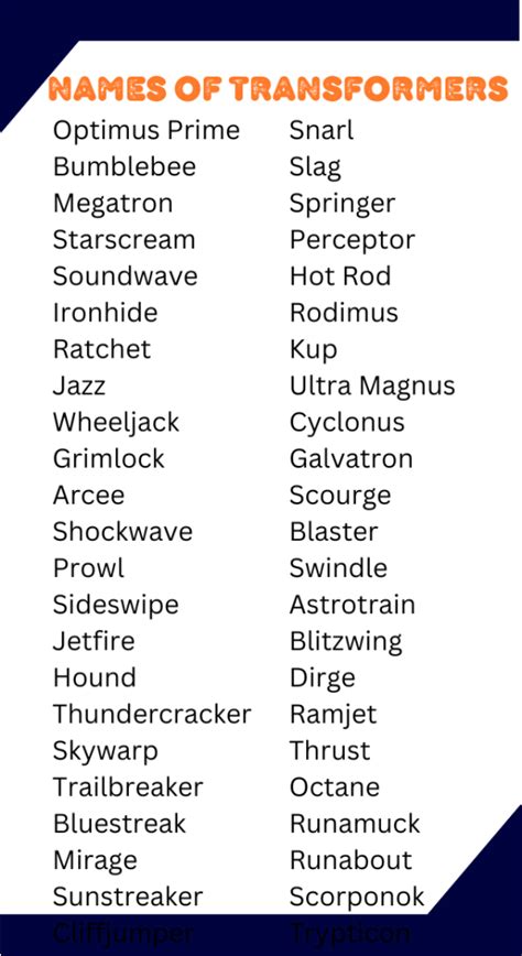 Transformers Name Ideas. Web mega voltex delta spark flame vector iron shard cyber quantum gear striker boltz thunder blade prowler nexus phantom. This is a list of the top 10 transformers names for 2023.