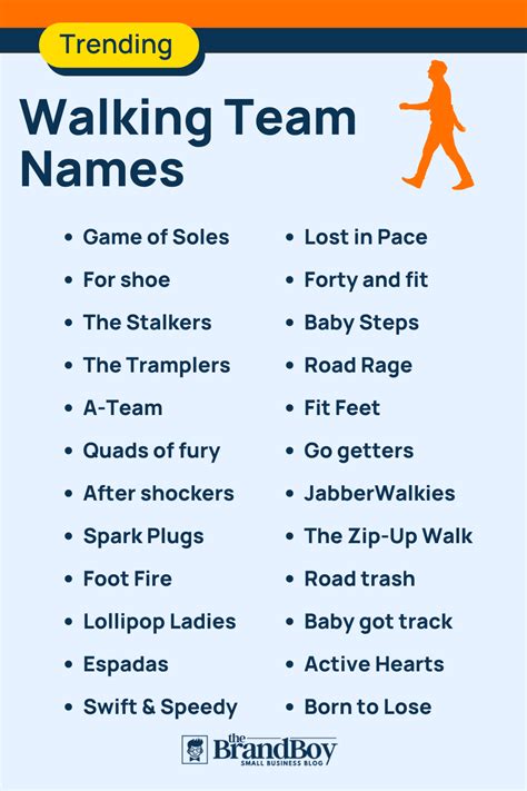 Here we provide you with some cool team names for the walking team. Table of contents walking team names best walking team. Web walking team names ideas | list of 100+ funny, powerful, creative walking team names. Web walking team name ideas. Web cool innovation team names ideas; Web the walking team name reflects the kind of team people join for work. Or do you know someone who does? So, scroll down and pick a. We have arranged a list of funny. Web walk team names ideas.