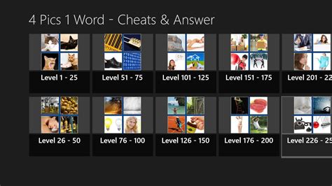 4 pics 1 word answers and cheat tool. Select the answers by level or use the cheat tool for the 4 pics 1 word game by.