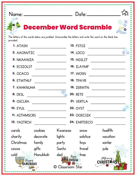 Web these christmas word scramble worksheets feature christmas words to unscramble and a picture to color. From letter scrambles to word searches,. Web find fun and festive word games to celebrate the season of christmas. Perfect for kids and adults alike. Web choose from 15 unique christmas word scrambles from easy to hard. Web december word scramble home » word scramble » seasonal december word scramble december word scramble to.